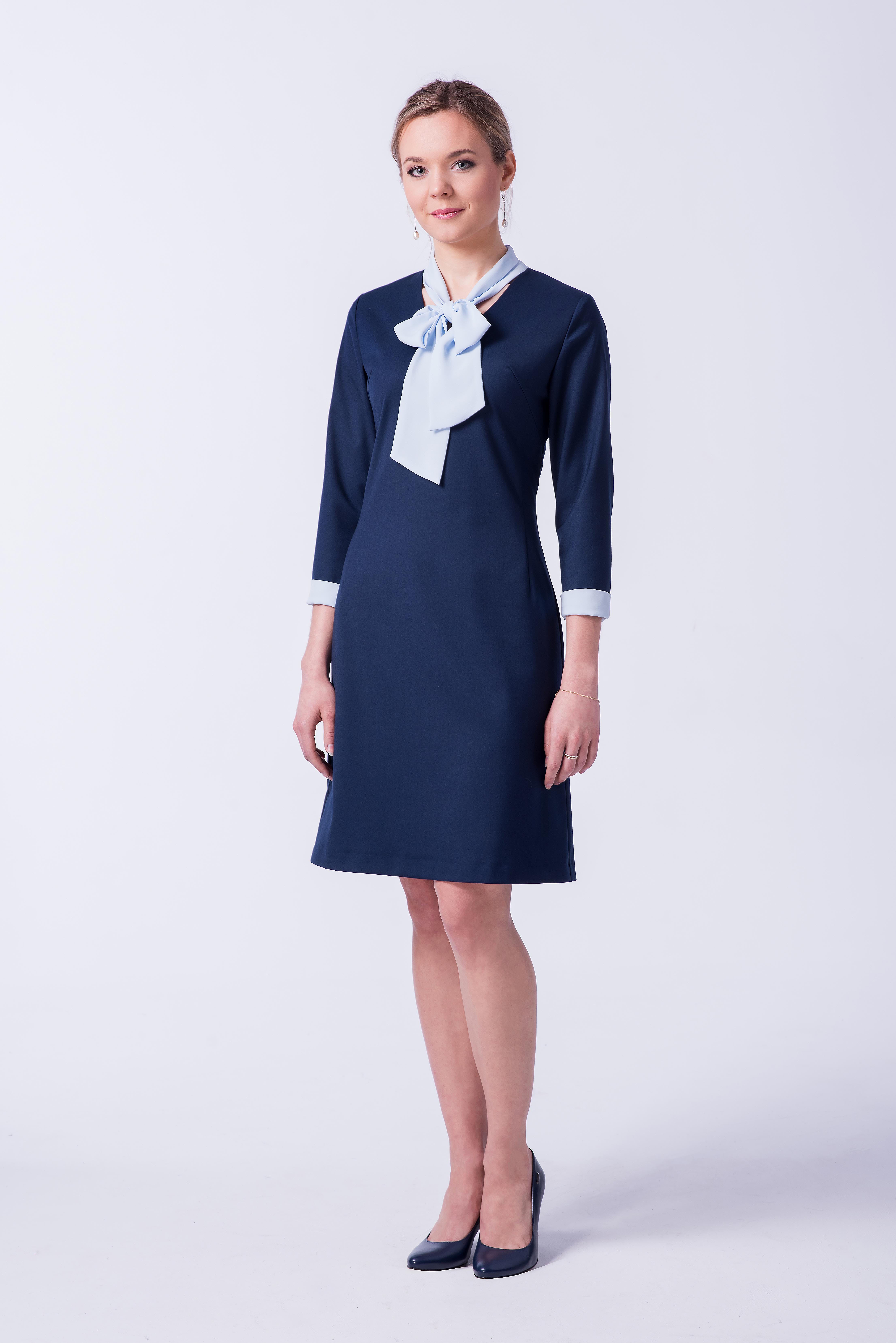 Galeria sukienka granatowa – z kołnierzykiem, z kokardą lub princeska