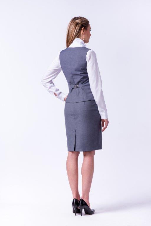 Szara, dopasowana kamizelka uzupełnia elegancki strój do pracy